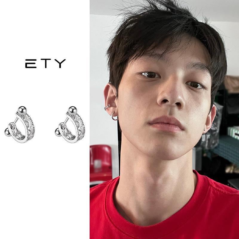 ピアス 男女兼用 メンズ ユニセックス 925純銀 スターリングシルバー スクリューバック ねじ式 クール ヒップホップ ストリート 個性的 幾何学模様 リング フープ スタッド 上質 高級感 プラチナメッキ 普段使い デイリー シンプル スタイリッシュ