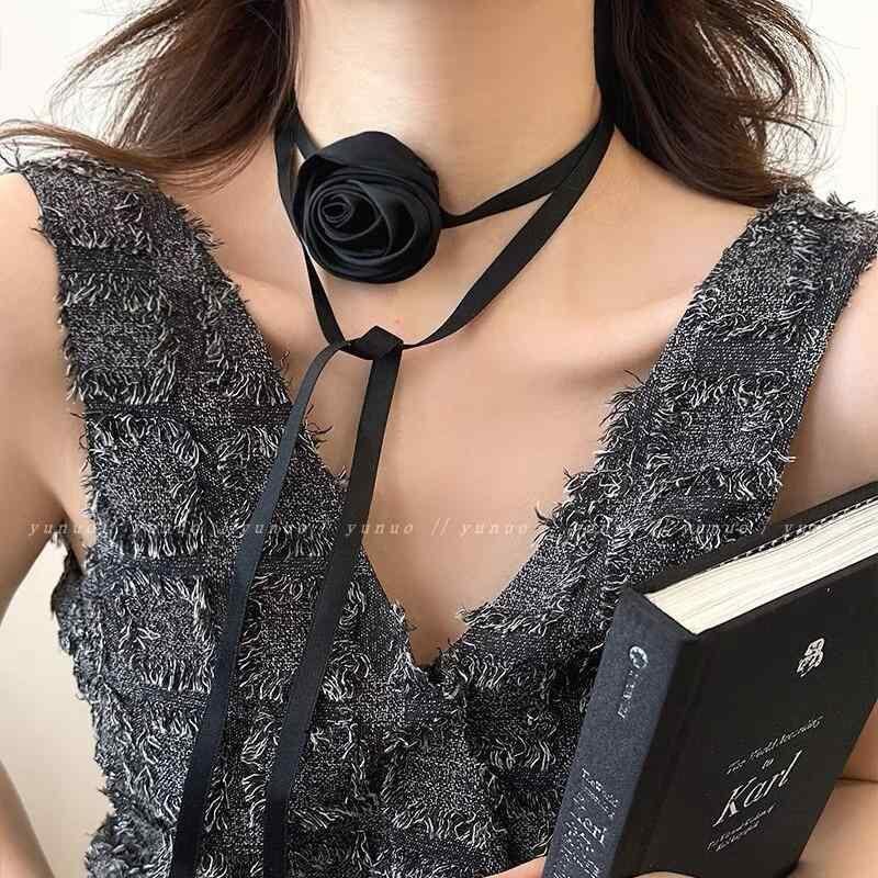 ヘアアクセサリー レディース 満開のバラ フラワーモチーフ ヘアバンド 髪飾り チョーカー ネックレス 一体型 かわいい フェミニン エレガント アイボリー ピンク ブラック