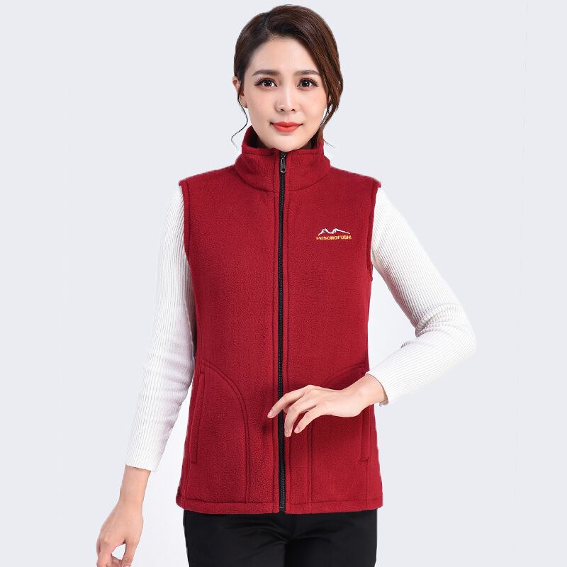 ベスト レディース ミセス ママ 秋 冬 フリース 裏起毛 裏ボア スタンドカラー ハイネック ゆったり ルーズ オーバーサイズ 保温 あったか 前開き ジップアップ ポリエステル 中綿 ノースリーブ