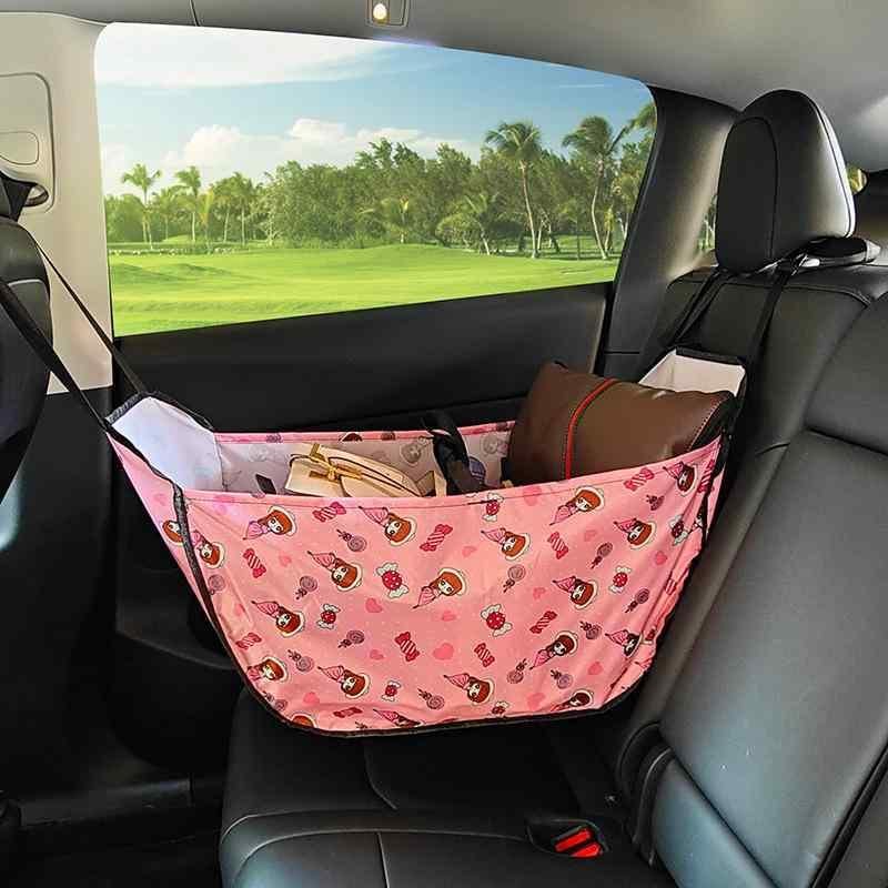 車載収納バッグ 後部座席 後席 シートバックポケット 車内整理 大容量 防水 持ち手付き 吊り下げ式 買い物 レジャー ドライブ 汎用タイプ 丈夫な生地 黒 ブラック