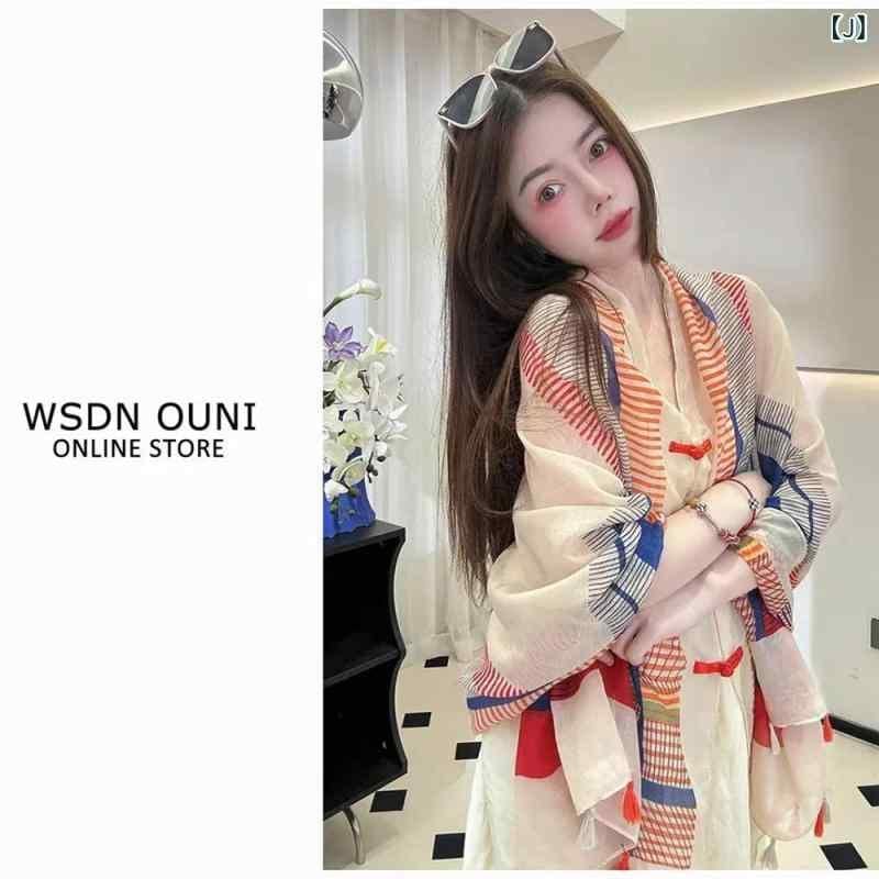 ストール ポンチョ レディース 女性用 中国風 民族風 盤扣デザイン 春夏秋 薄手 通気性 日よけ 紫外線対策 冷房対策 旅行 観光 羽織り ミドル丈 ケープ ファッション小物