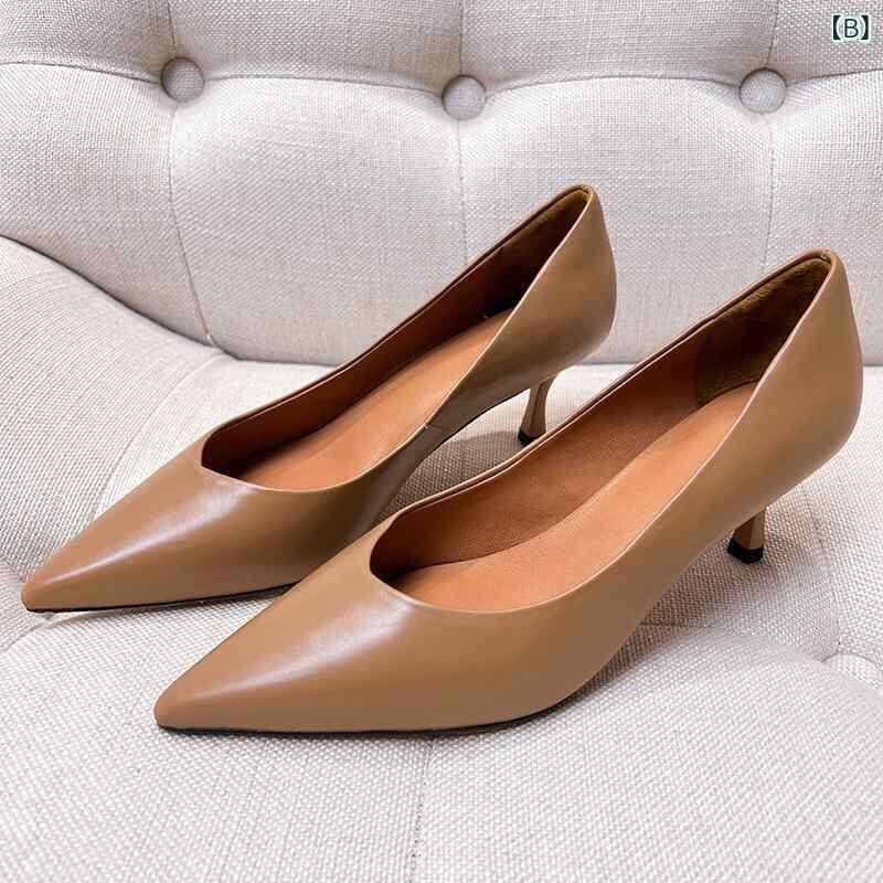 パンプス レディース Vカット ポインテッドトゥ 6cmヒール 細ヒール カーフレザー 高級感 フォーマル オフィス 通勤 パーティー 春 夏 秋 ブラック カーキ 浅履き 羊革インソール シンプルデザイン