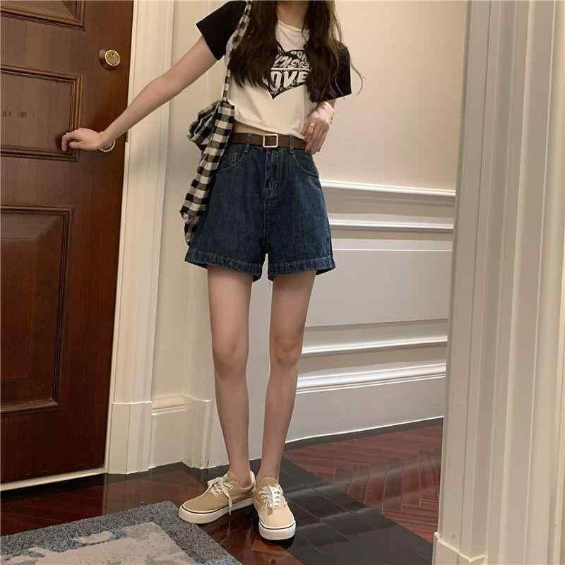 デニム ショートパンツ レディース ダークブルー 濃紺 ハイウエスト ハイライズ Aライン ワイドレッグ ゆったり ルーズ 細見え 体型カバー 脚長効果 レトロ ヴィンテージ カジュアル 綿 コットン 夏物 デイリーユース 着回し