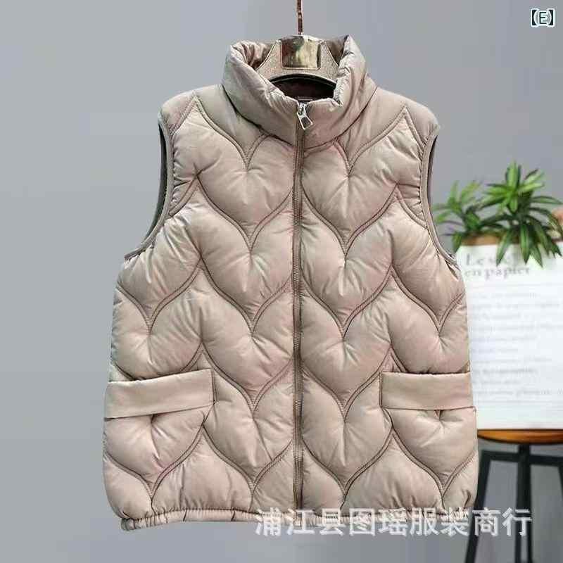 ・カテゴリ: 中綿ベスト・スタイル: 日韓カジュアル・主な素材: ポリエステル90%以上・ネックライン: スタンドカラー・着丈: 標準丈・柄: 無地・カラー展開: ブラック、ダークレッド、ブラウン、グリーン、カーキ、パープル・サイズ展開: 3XL、4XL、5XL、6XL・中綿: フェイクダウン・デザイン: プレーン・デザイン要素: ポケット付き・開閉: ファスナー・対象性別: レディース・対象年齢: 大人・フィット: レギュラー