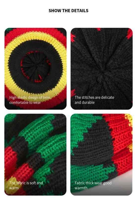 ニット帽 男女兼用 秋冬 レインボーカラー ストライプ レゲエ帽 ジャマイカ風 個性的 ハロウィン 防寒 保温 防風 ポリエステル素材 ラウンドトップ つばなし カジュアルスタイル