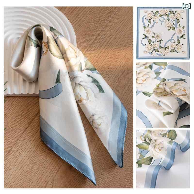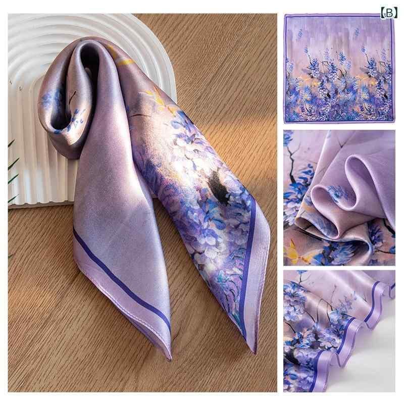 スカーフ レディース 桑蚕シルク100% 花柄 プリント 正方形 スクエア 53cm角 薄手 軽量 春 夏 オールシーズン 普段使い 通勤 フォーマル エレガント フェミニン 上品 きれいめ ファッション小物 グリーン系 ブルー系 パープル系