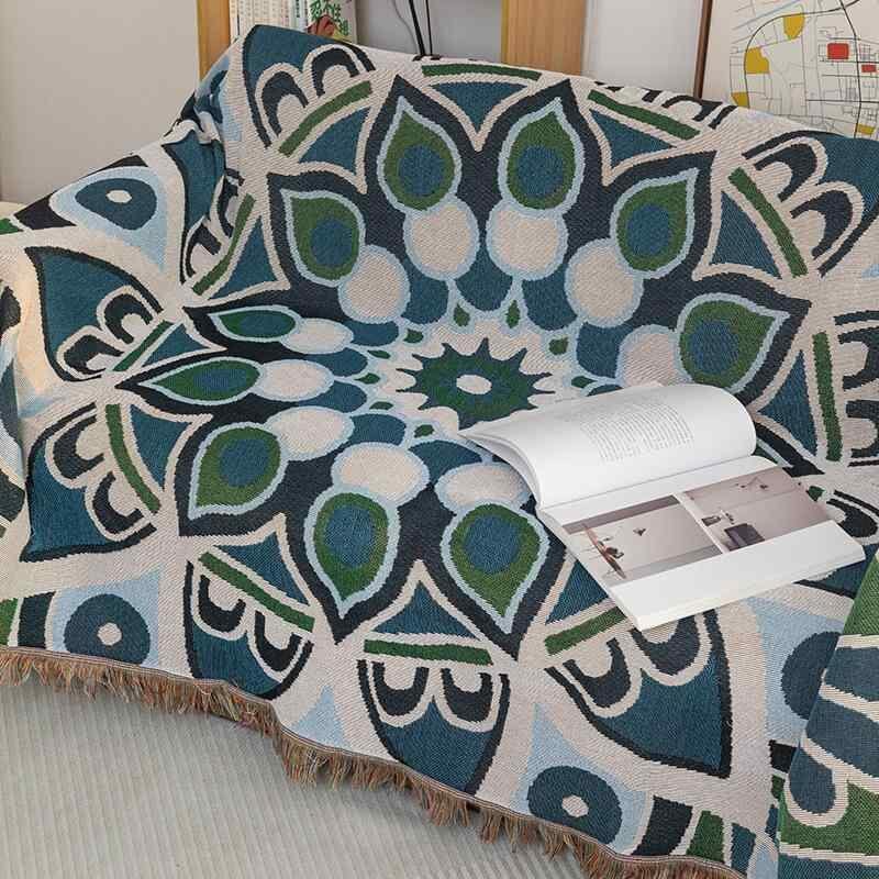 ソファカバー マルチカバー 北欧 レトロ ヴィンテージ 窓花柄 ステンドグラス風 おしゃれ インスタ映え 秋冬 猫 爪とぎ防止 ペット対応 インテリア