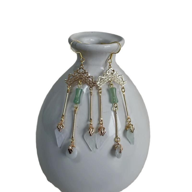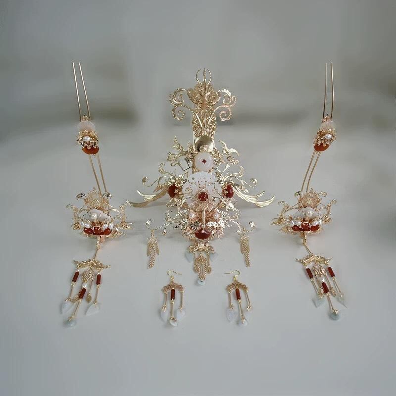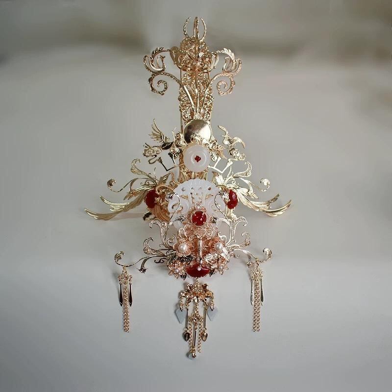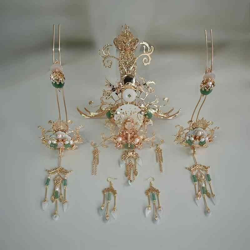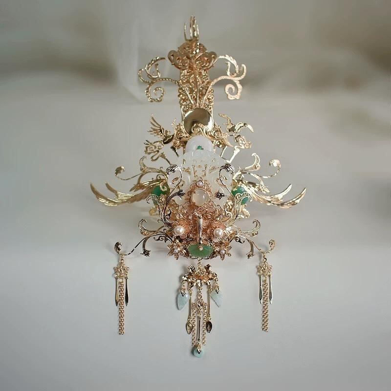 ヘアアクセサリー レディース エキゾチック 古風 神女飛天 鳳凰冠 頭飾り 額飾り インラク ヘアチェーン 髪飾り 合金製 ハンドメイド 花モチーフ 華やか 漢服 チャイナドレス 中華風 コスプレ イベント 舞台 撮影小物 レッド 浅緑