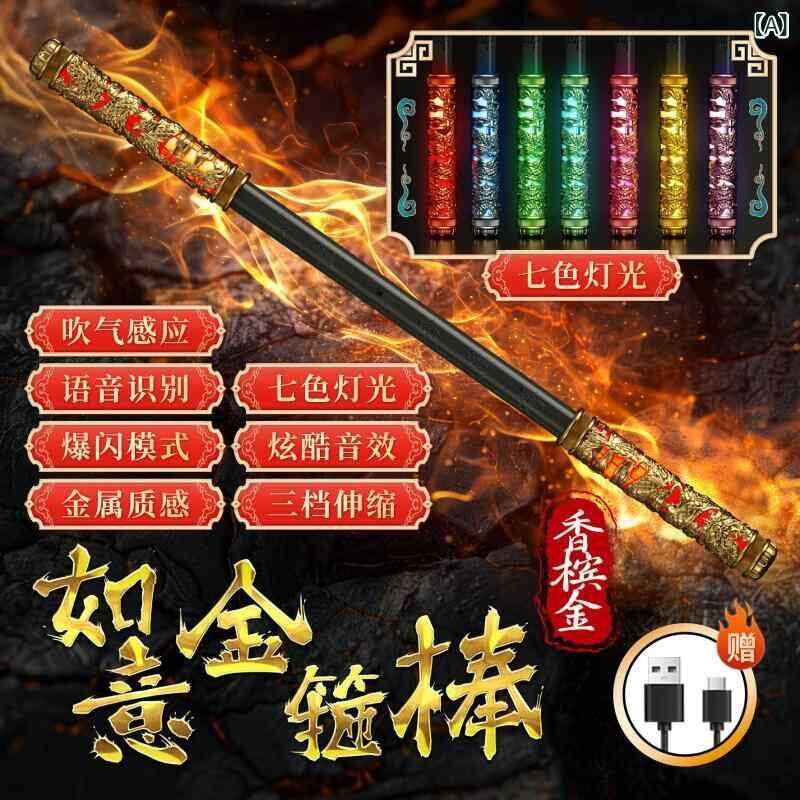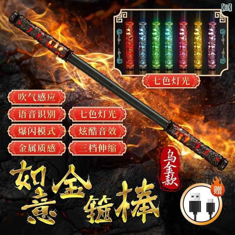 おもちゃ 子供用 黒悟空 如意金箍棒 音声操作 息吹き連動 自動伸縮 レーザー光線 七色LED発光 多機能 知育玩具 プラスチック製 光る