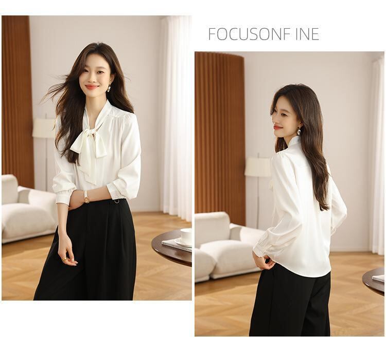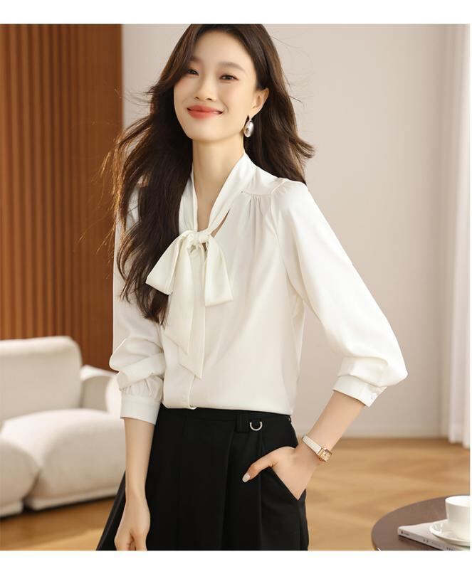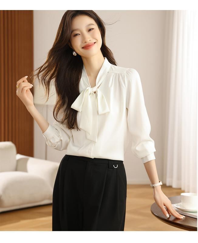 ブラウス レディース 桑蚕シルク 天然シルク ダブルジョーゼット フレンチスタイル Vネック リボンデザイン エレガント 上品 オフィス 通勤 フォーマル シワになりにくい トップス