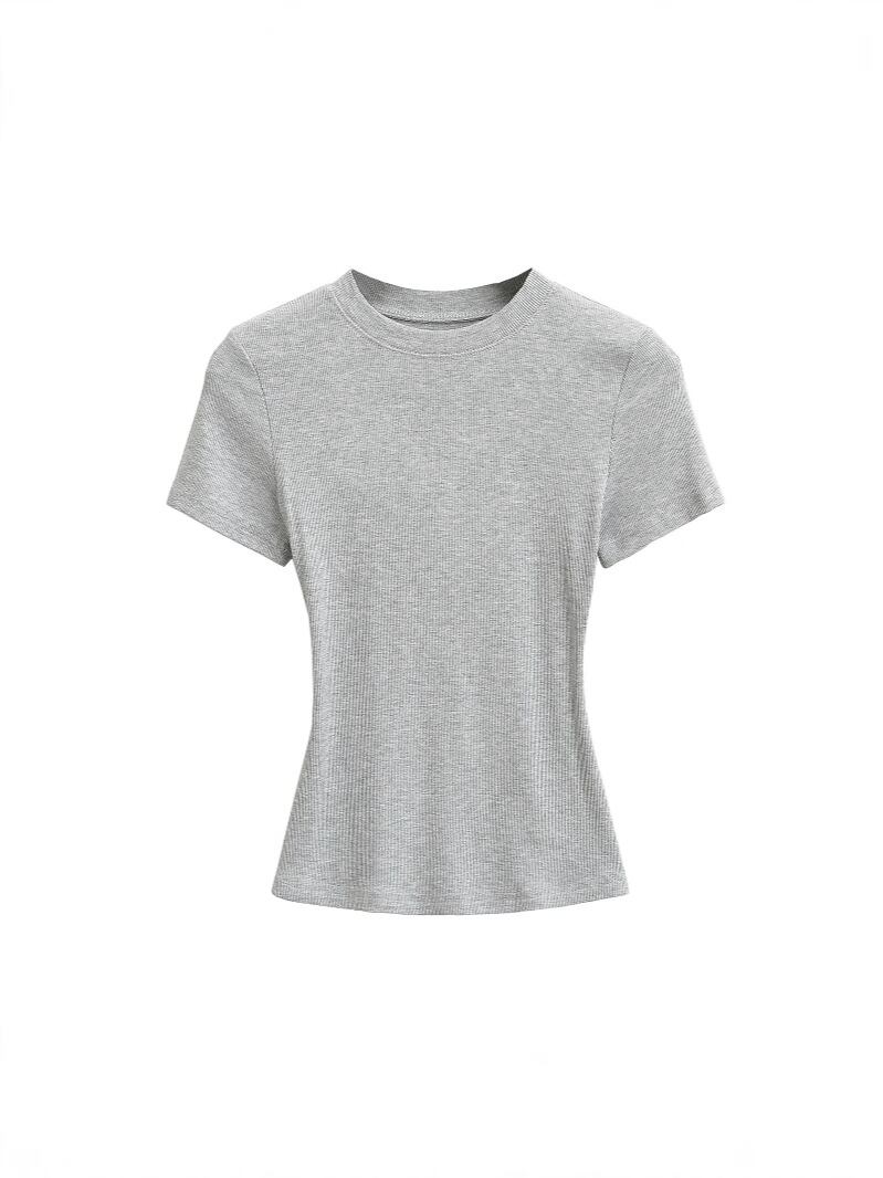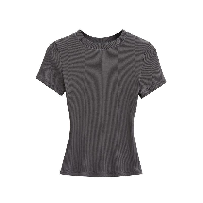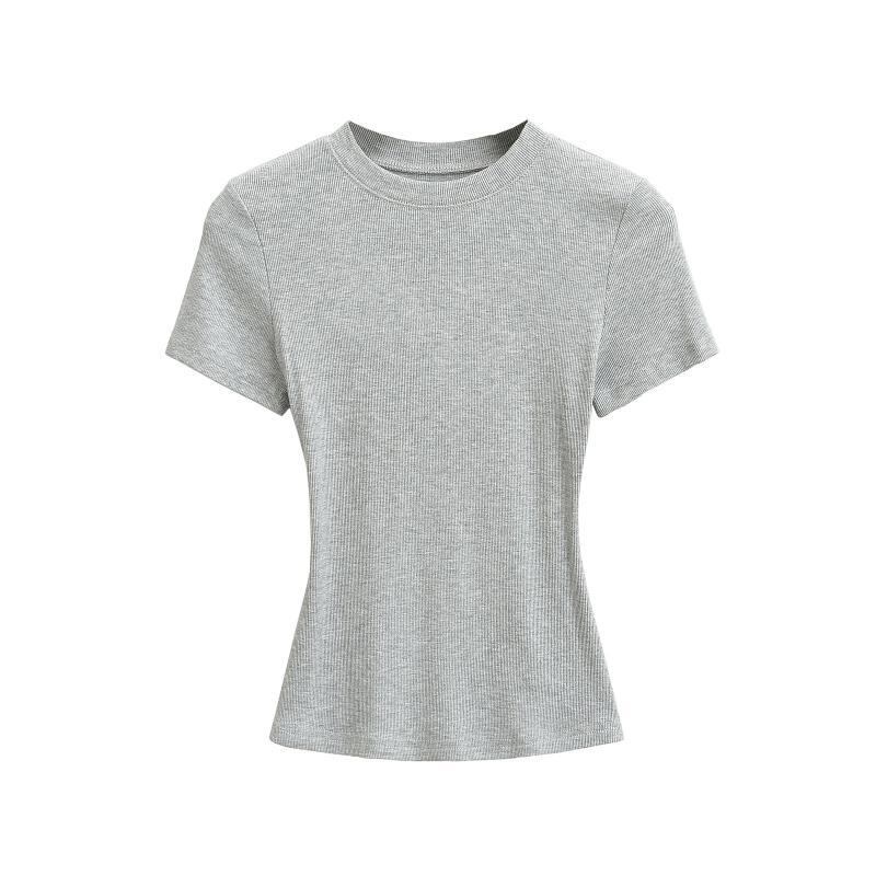 Tシャツ レディース タイトフィット スリムフィット リブ 半袖 クルーネック 無地 ショート丈 ストレッチ 伸縮性 再生繊維 プルオーバー セクシー デイリーユース 普段着 アクティブウェア