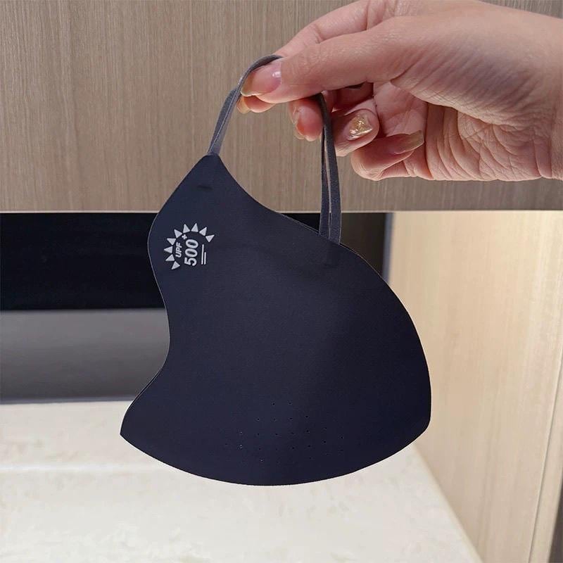 マスク 男女兼用 薄手 接触冷感 UPF50+ 紫外線対策 UVカット 曲線型 ワイド 目元カバー ナイロン 通気性 速乾 抗菌 防臭 耳掛け式 無地 春夏秋 向け