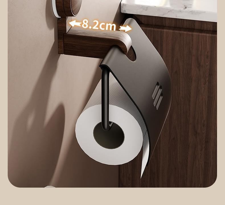 トイレットペーパーホルダー 吸盤式 北米ウォールナット材 バスルーム 浴室 トイレ 洗面台 洗面所用 ロールペーパーホルダー スペースアルミ製 レトロモダン シンプル