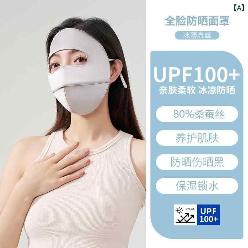 フェイスマスク レディース 女性用 夏用 UVカット 紫外線対策 日焼け防止 顔全体カバー フルフェイス 桑蚕シルク 天然絹 吸湿速乾 通気性 マスク 屋外 アウトドア スポーツ レジャー 通勤 サイクリング ガーデニング おしゃれ シンプル 高見え