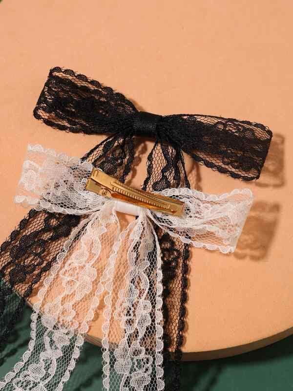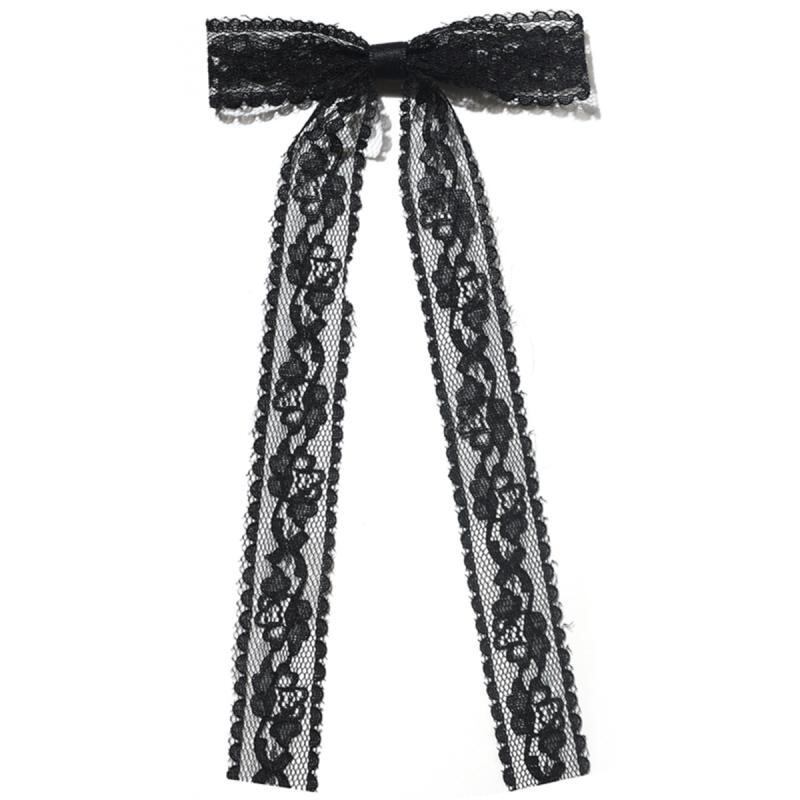 ヘアクリップ レディース レース リボン 蝶々結び ダックビルクリップ ブラック ホワイト モノトーン かわいい フェミニン 華やか 上品 普段使い お出かけ フォーマル ヘアアクセサリー 髪飾り