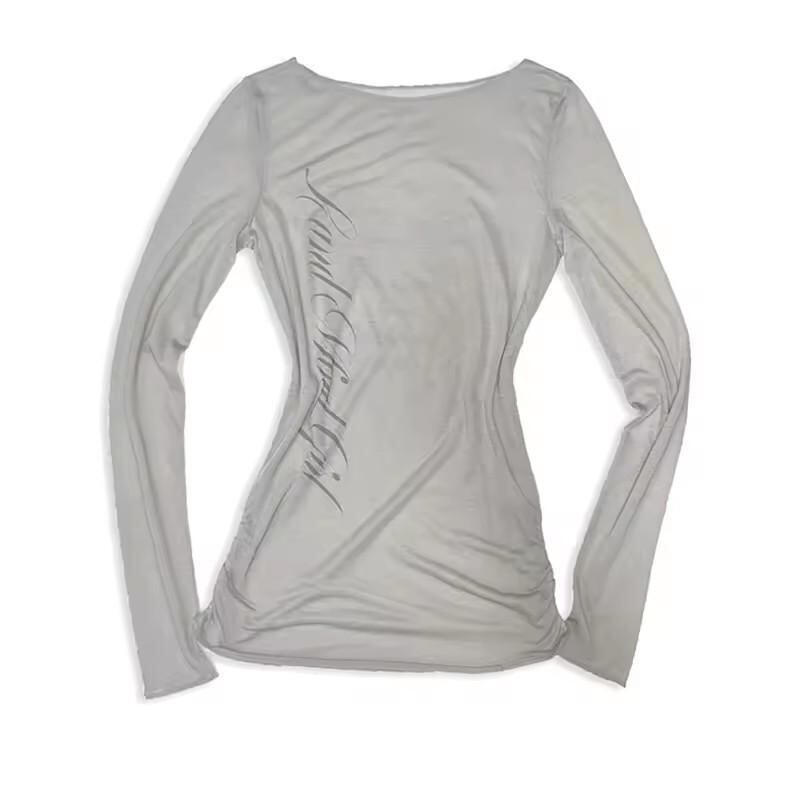Tシャツ レディース ゴシック パンク ファッション 欧米風 セクシー ストリート 着回し 長袖 クルーネック 丸首 ゆったり ルーズフィット 無地 切り替え パッチワーク ポリエステル ブラック ホワイト グレー