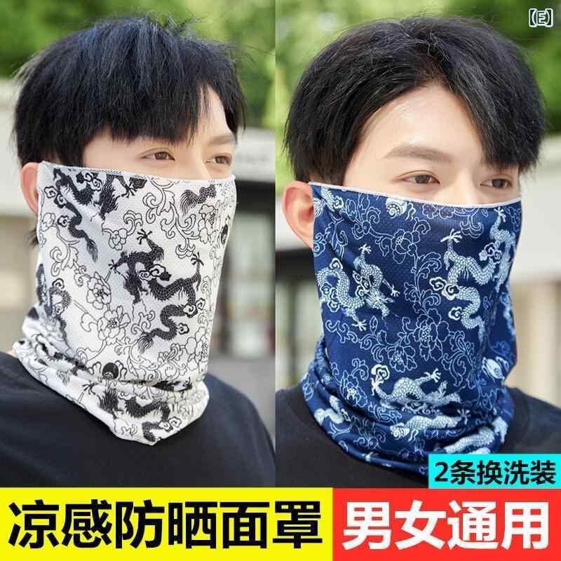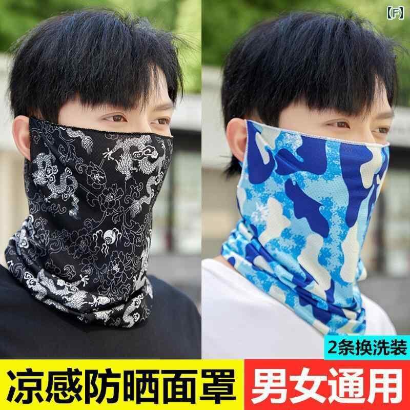 フェイスマスク メンズ 男性用 接触冷感 UVカット 日焼け対策 全顔 ネックカバー ネックガード メッシュ 薄手 軽量 夏用 再生繊維 ビスコース繊維 サイクリング アウトドア スポーツ 自転車 吸湿速乾