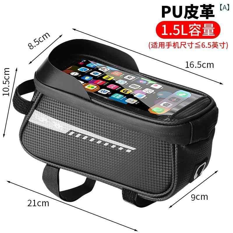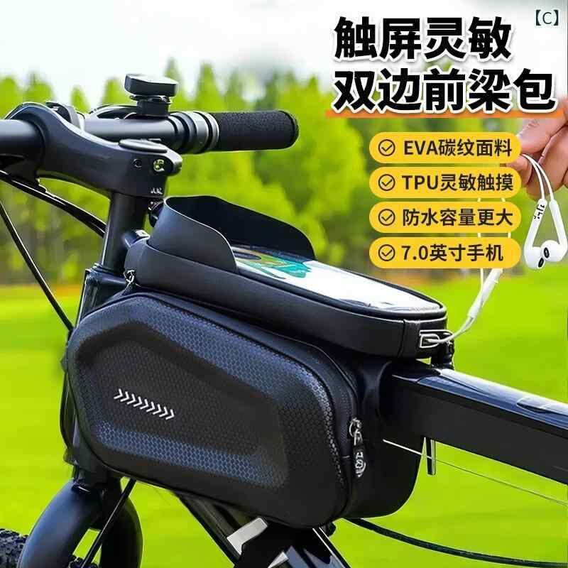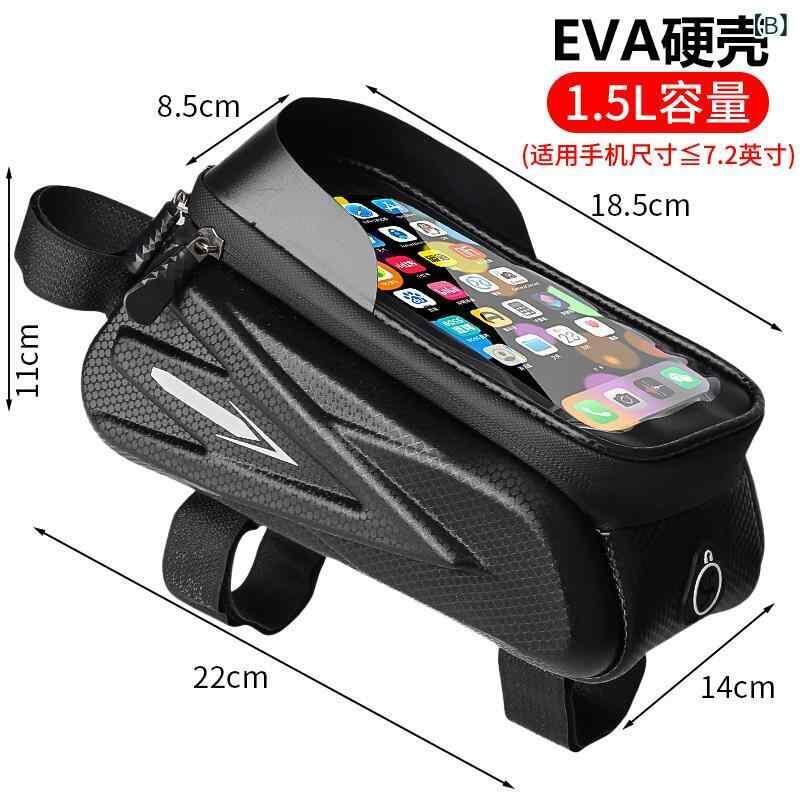 自転車バッグ トップチューブバッグ ブラック 防水 スマホ対応 タッチスクリーン EVカーボン調 ハードシェル 収納 ロードバイク マウンテンバイク クロスバイク サイクリング 小物入れ レインカバー付き 1.5L 2L