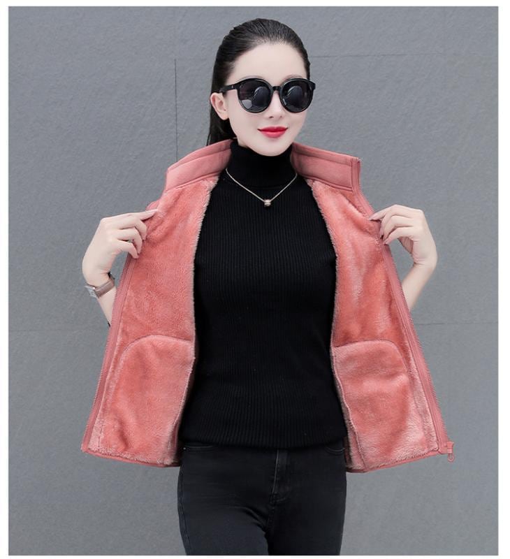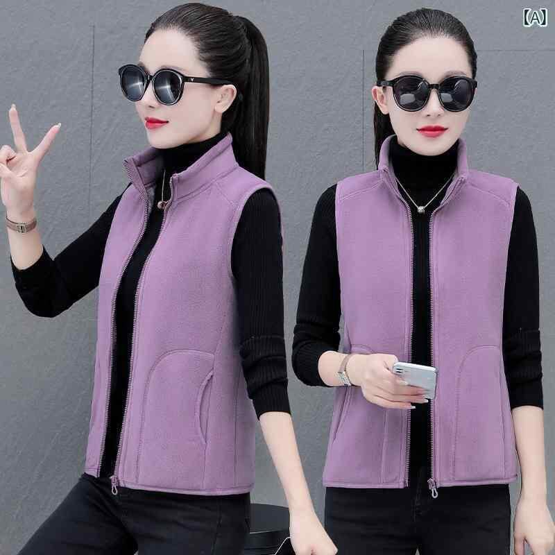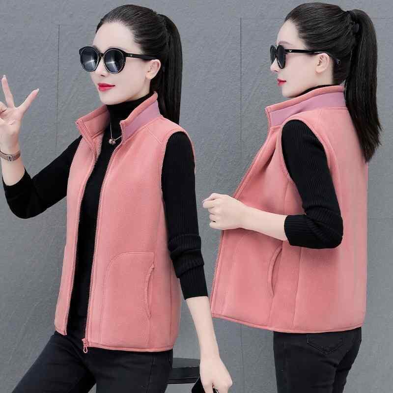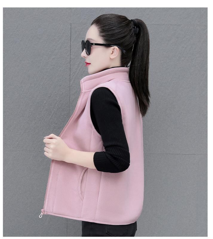 ベスト レディース ミセス ママ 両面フリース 裏起毛 厚手 保温 スタンドカラー ノースリーブ カジュアル ポリエステル素材 普段使い お出かけ 防寒 羽織り