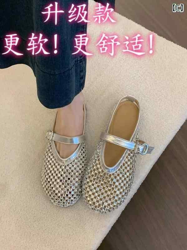 ミュール レディース 夏 普段使い おしゃれ メッシュ ラインストーン レトロ フレンチ 高級感 エレガント つま先あり クローズドトゥ スリッポン 通気性 軽量 フェイクレザー サンダル