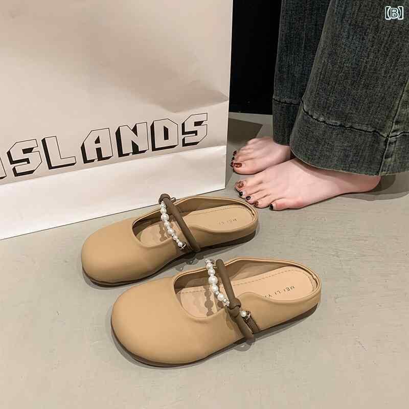 ミュール レディース 夏用 外履き スリッポン 高級感 フェイクレザー ソフトソール つま先あり カジュアル デイリーユース サンダル ラバーソール ベージュ カーキ