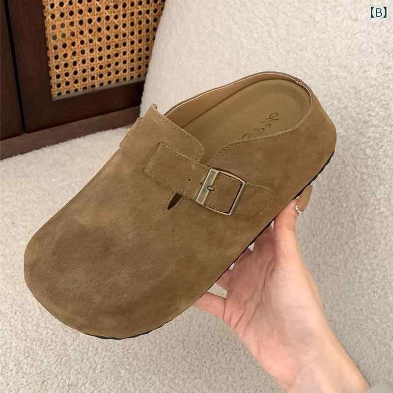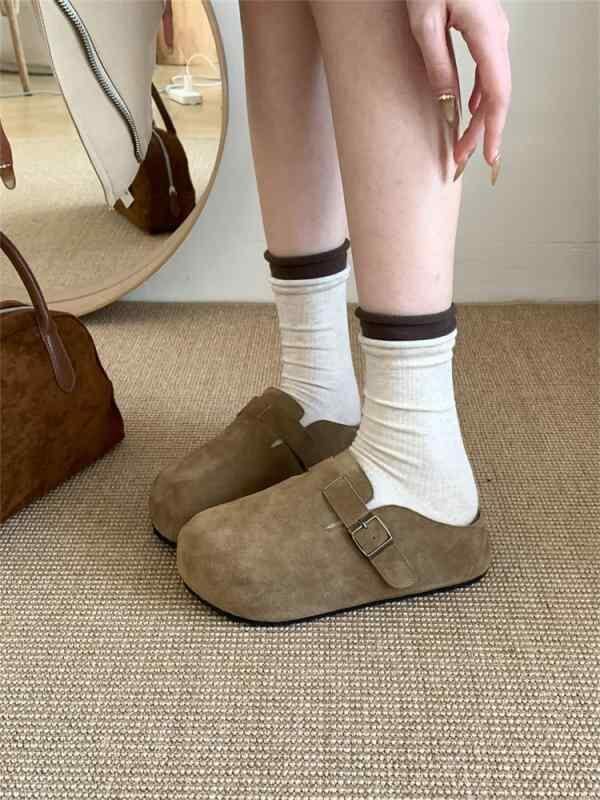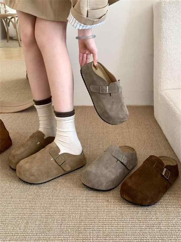 ミュール レディース レトロ スリッポン スエード調 クローズドトゥ ラウンドトゥ 厚底 インヒール ラバーソール 普段使い オフィス カジュアルスタイル 高級感 コンフォートサンダル