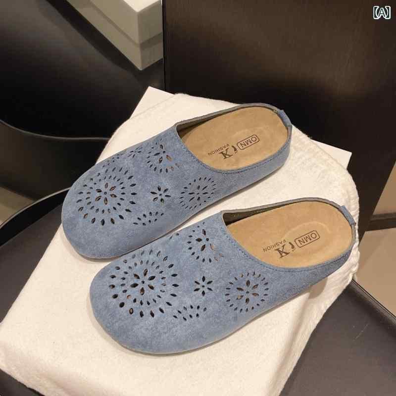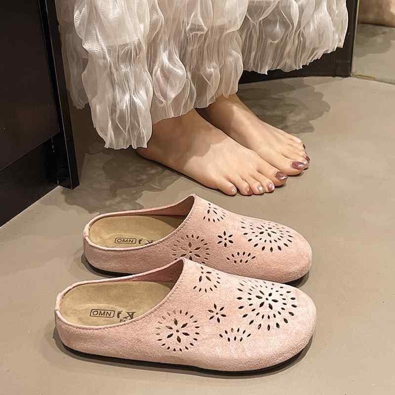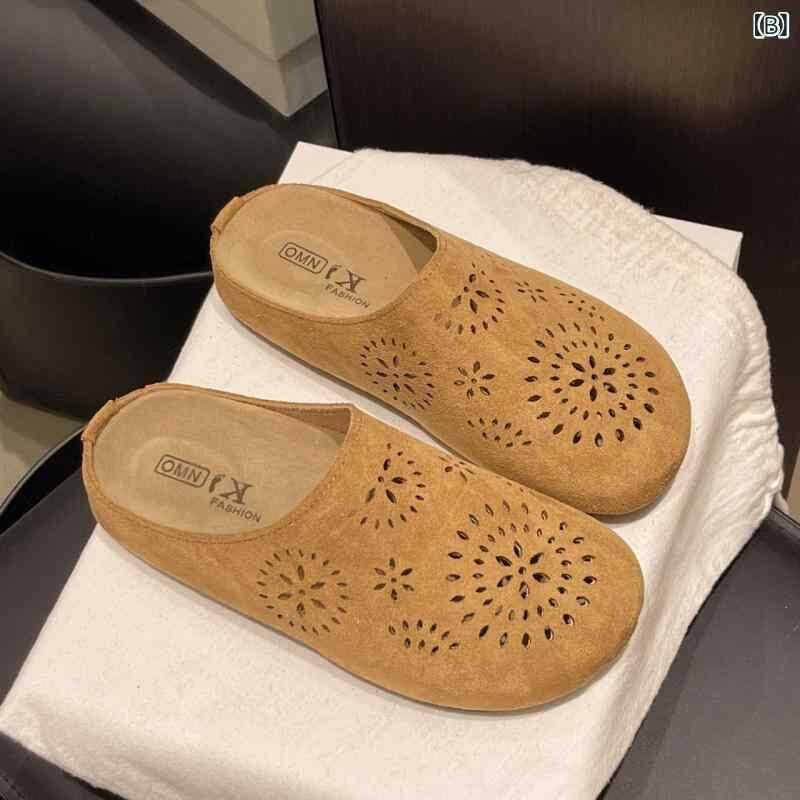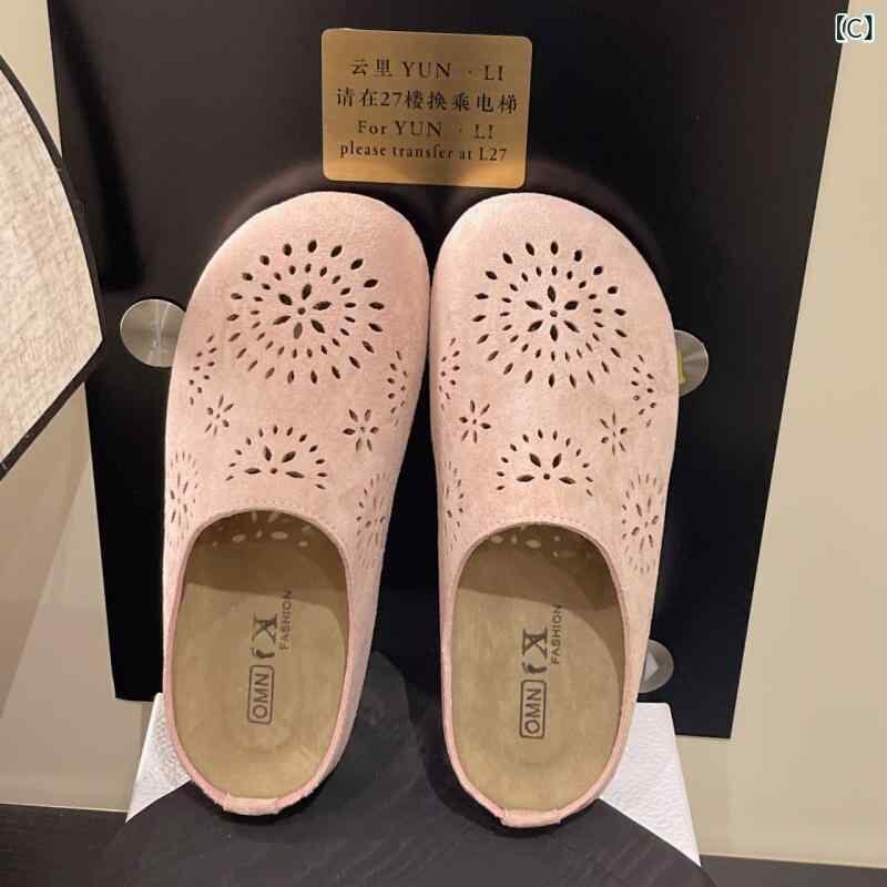 サンダル レディース メッシュ 通気性 ミュール サボサンダル フラットソール 外履き 高級感 合成皮革 PUレザー ゴム底 ラウンドトゥ カジュアル リラックス スカートコーデ
