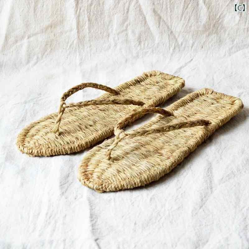 サンダル メンズ レディース 手編み 草 麻 リネン 天然素材 フラットヒール 通気性 エスニックテイスト ヴィンテージ風 編み込みデザイン 無地 夏物 ぺたんこ ナチュラルカラー アースカラー ベージュ ブラウン系