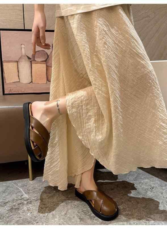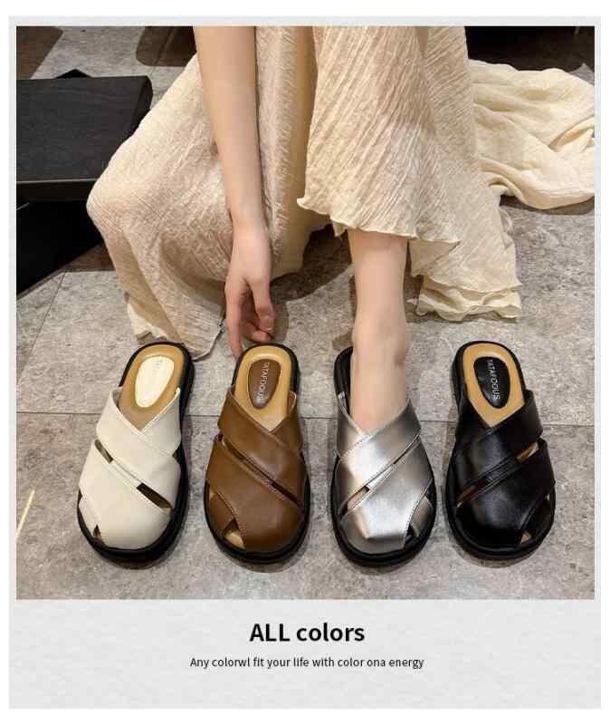 ・カテゴリ: ミュール・スタイル: カジュアル・デザイン: カットアウト・アッパー素材: PU・ソール素材: ゴム・柄: 無地・着用シーン: デイリー・製法: セメント製法・機能: ヒールアップ、速乾・重さ: 約800g・カラー展開: ブラウン、ブラック、シルバー、オフホワイト・サイズ展開: 35、36、37、38、39、40・留め具: スリッポン