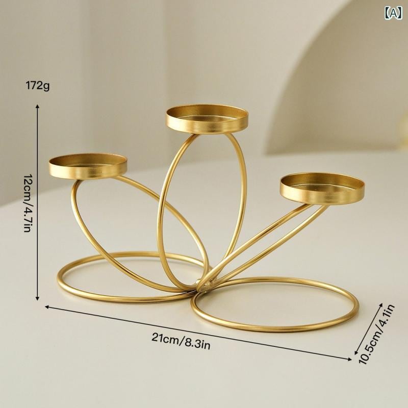 キャンドルスタンド キャンドルホルダー アイアン製 ダイニングテーブル 家庭用 シンプル モダン 上品 エレガント 円形 3本立て ゴールド ブラック インテリア 飾り キャンドルライトディナー