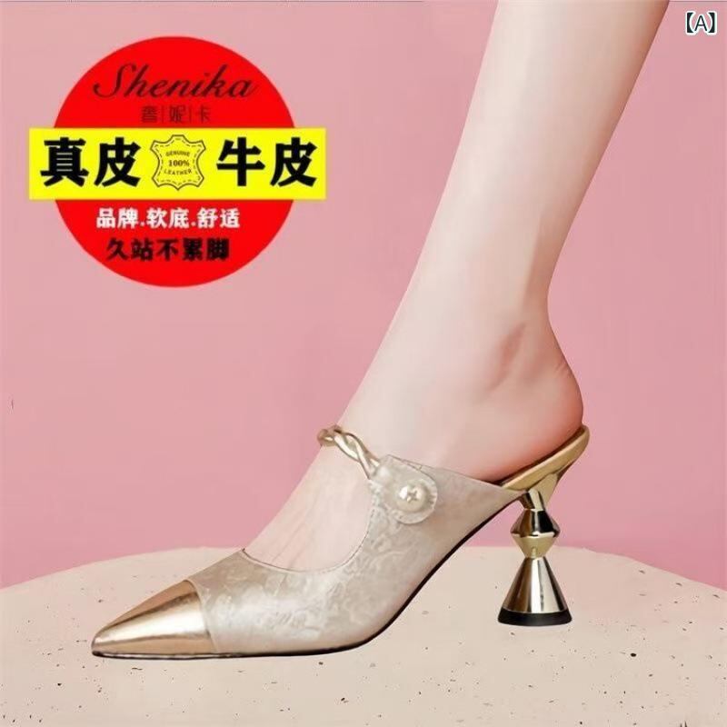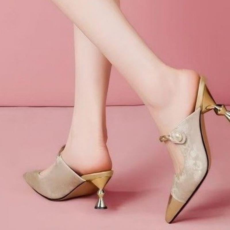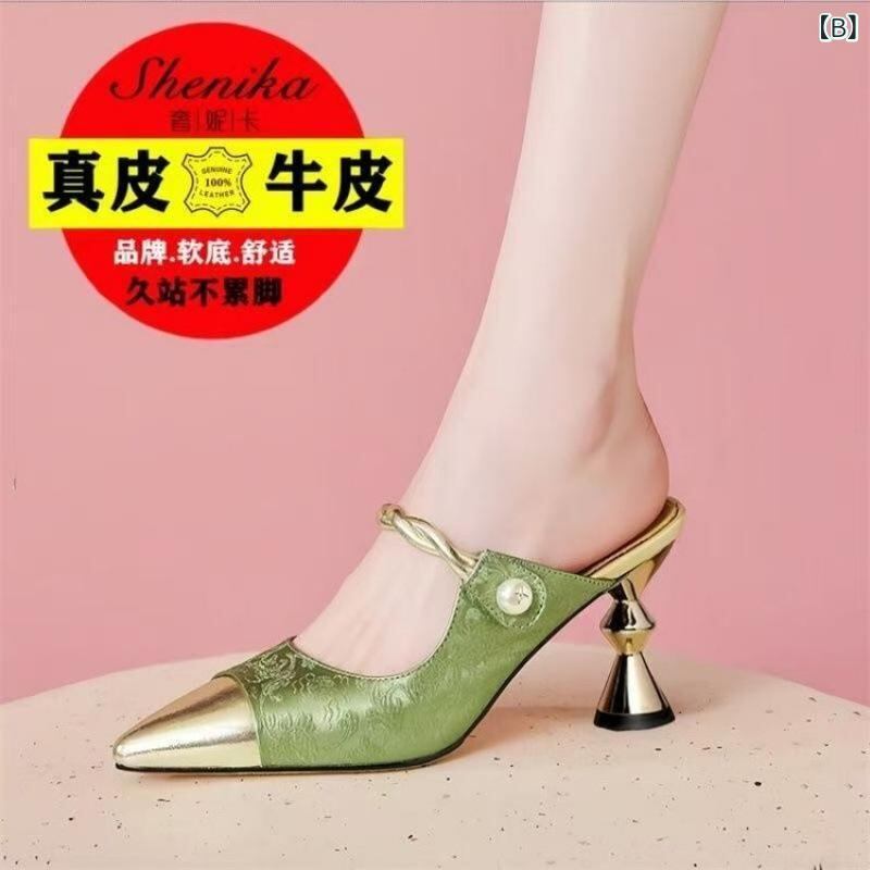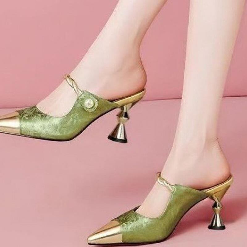 ミュール レディース ハイヒール 細ヒール ピンヒール つま先カバー 合成皮革 高級感 おしゃれ エレガント 外履き オフィス 普段使い 通勤 サンダル 夏 シャンパンカラー グリーン