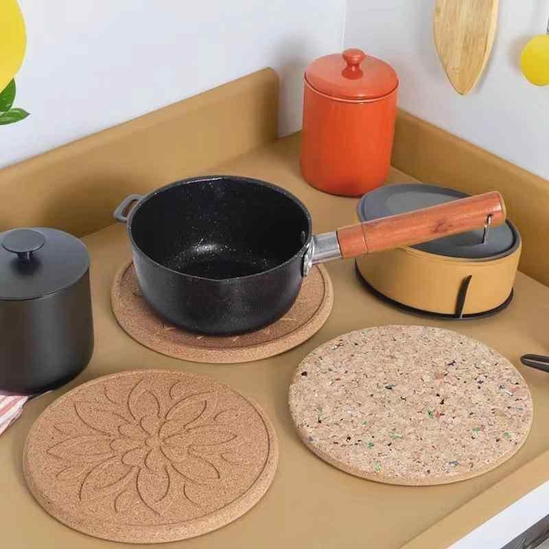 鍋敷き コルク製 円形 断熱マット 家庭用 キッチン雑貨 テーブルウェア ランチョンマット 食卓マット 鍋置き 食器置き マルチマット 無地 花柄 エンボス加工
