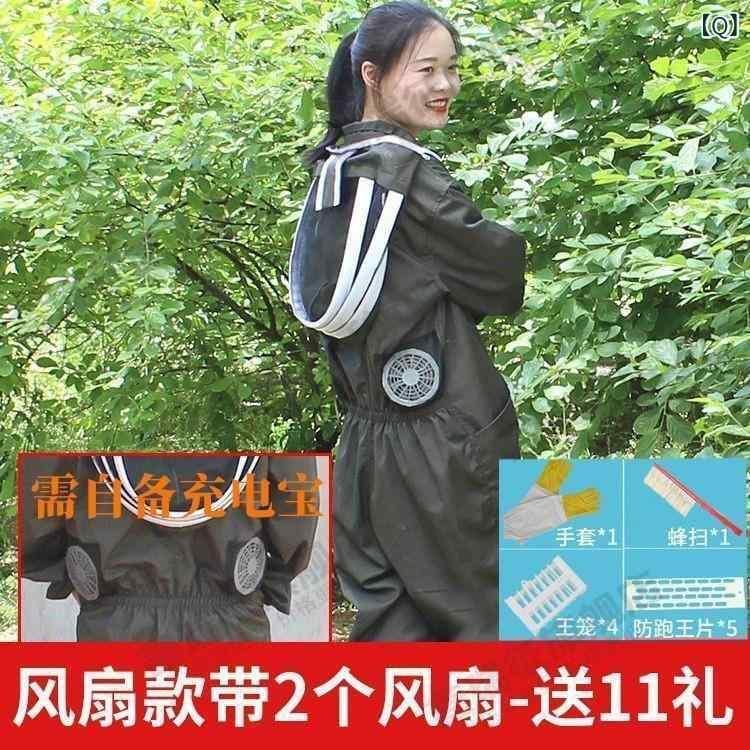 蜂防護服 ファン付き つなぎタイプ 全身保護 養蜂作業用 蜂駆除用 厚手 綿素材 通気性抜群 メッシュ構造 冷却機能 蜂対策 作業服