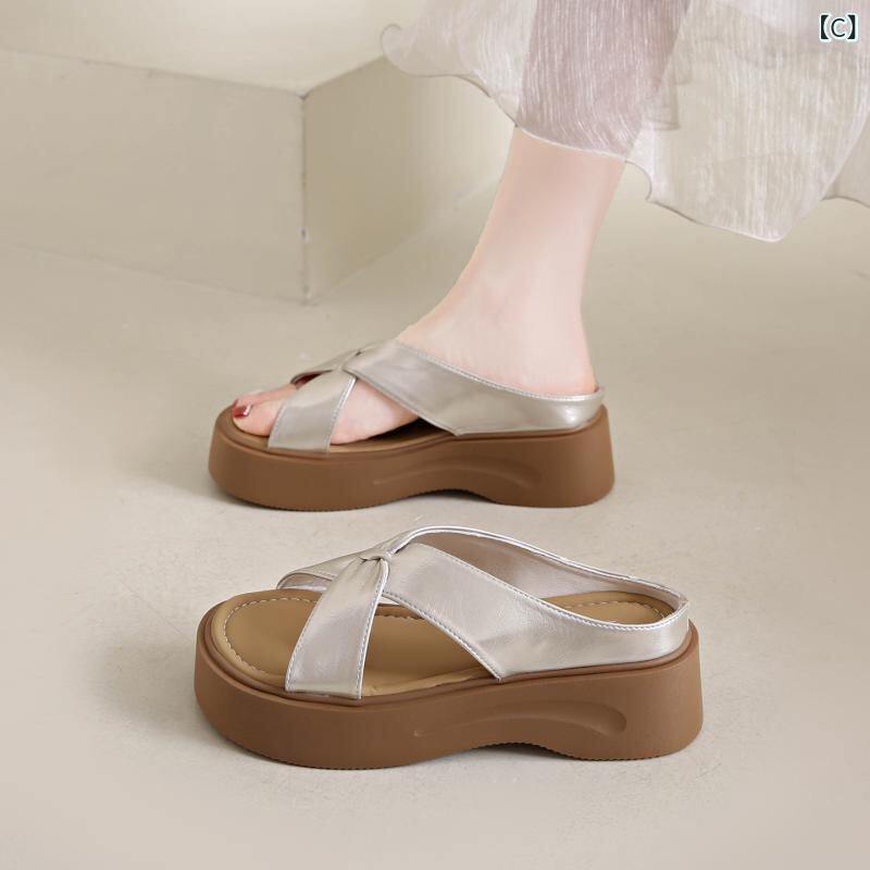 サンダル レディース 厚底 つま先あり ミュール ボストンサンダル 脚長効果 低身長向け 高級感 PU素材 ラバーソール ラウンドトゥ 日常カジュアル 夏 外履き