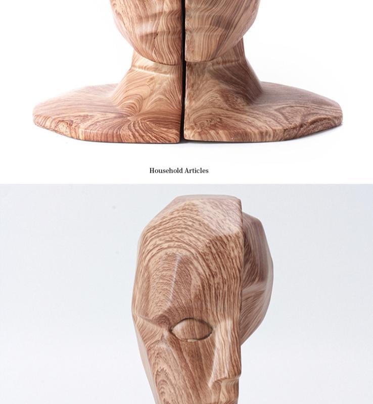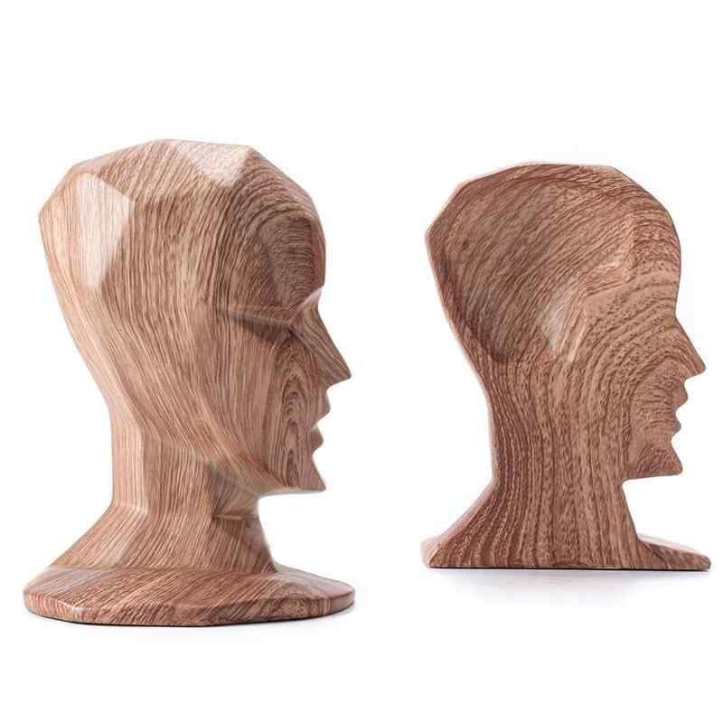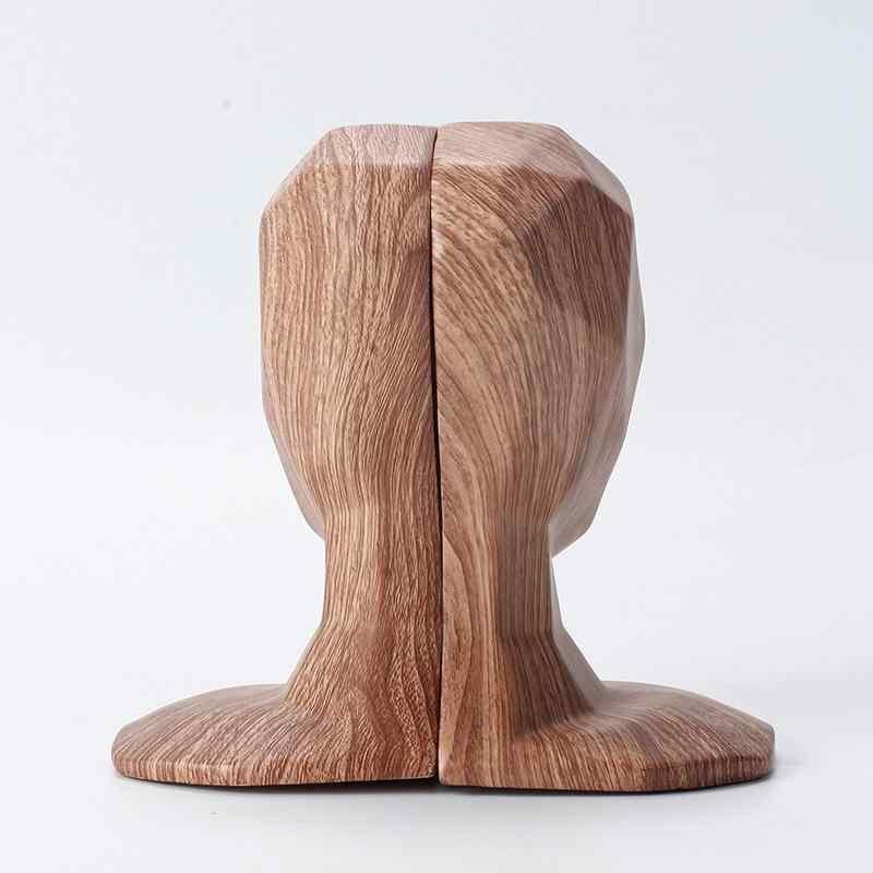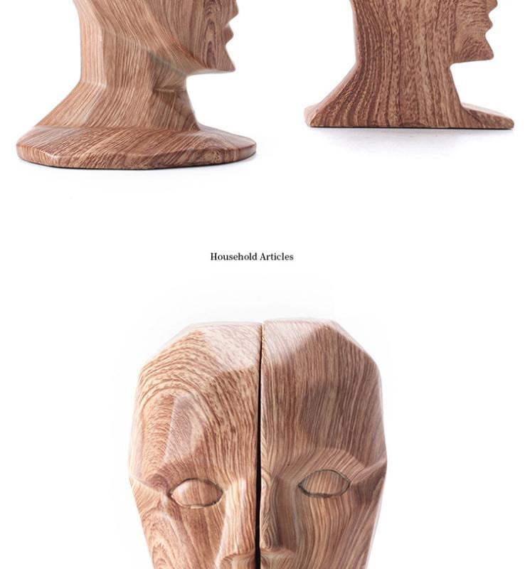 ブックエンド 北欧風 モダン 抽象 幾何学 顔モチーフ 合成樹脂製 オブジェ 本立て 書斎 デスク 卓上 インテリア飾り ディスプレイ リビング おしゃれな置物 ウッド調