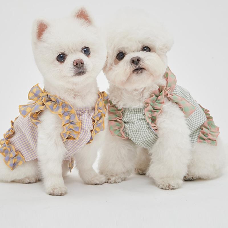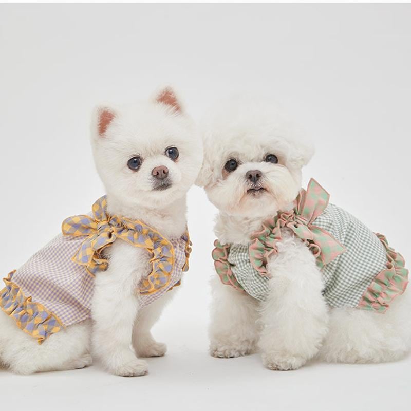 ペットウェア 女の子用 小型犬 中型犬 犬服 綿混 カジュアル チェック柄 ベスト タンクトップ Tシャツ パープル系 グリーン系 お散歩 お出かけ 普段使い ユニークデザイン