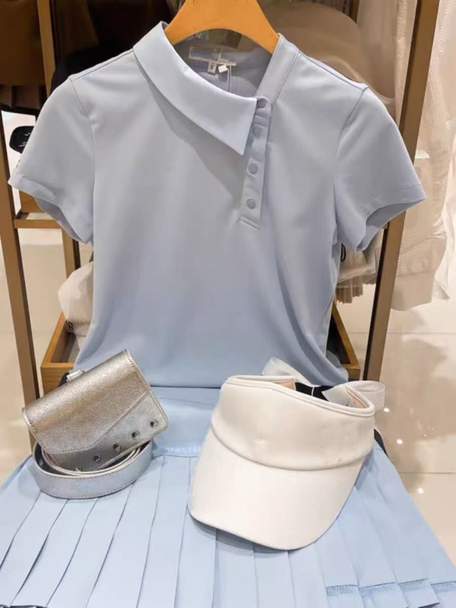 ポロシャツ レディース 半袖 ゴルフ スポーツウェア 吸汗速乾 ドライ素材 快適 カジュアル アウトドア レジャー 普段使い 着回し抜群 ライトブルー 水色
