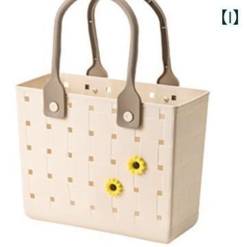 収納バスケット 持ち手付き ピクニックカゴ バスルーム 浴室収納 脱衣カゴ アウトドア レジャー キャンプ おしゃれ 高見え ソフト素材 水切り底 お風呂 シャンプーラック 洗面所 プラスチック製 アボカドグリーン ライトミルクグリーン クリームコーヒー