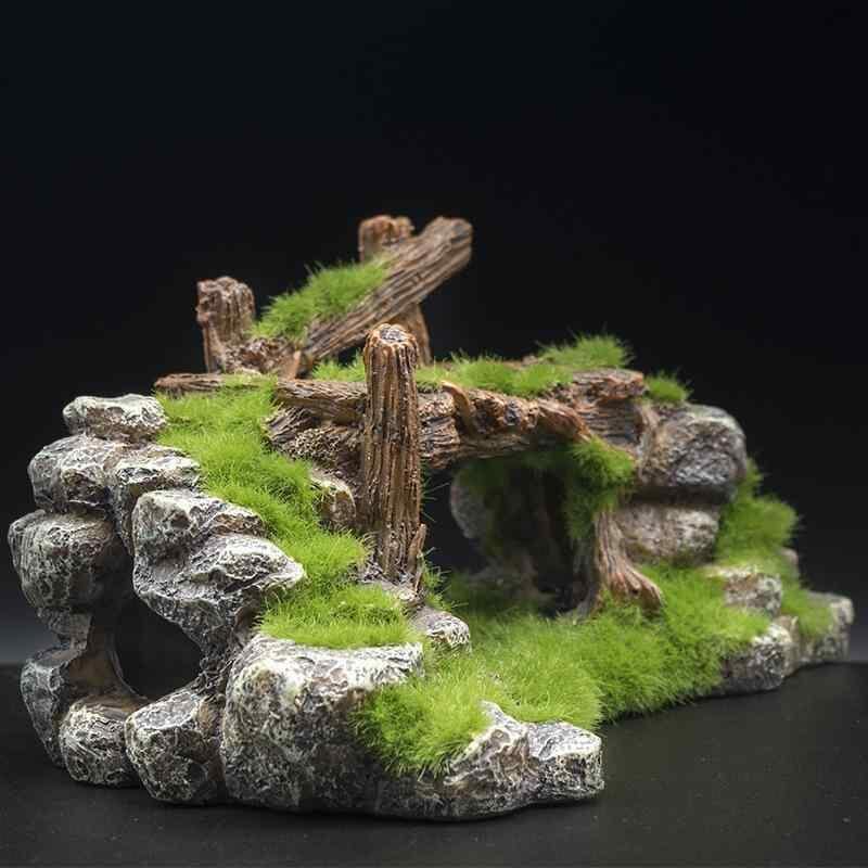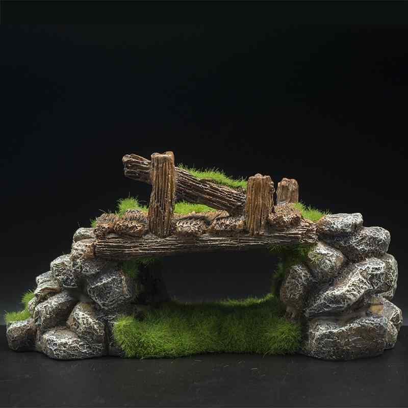アクアリウム用品 樹脂製 苔付き 橋 水槽 レイアウト石 フェイク 洞窟 隠れ家 亀水槽 装飾 築山 擬岩 オブジェ 観賞用 デコレーション