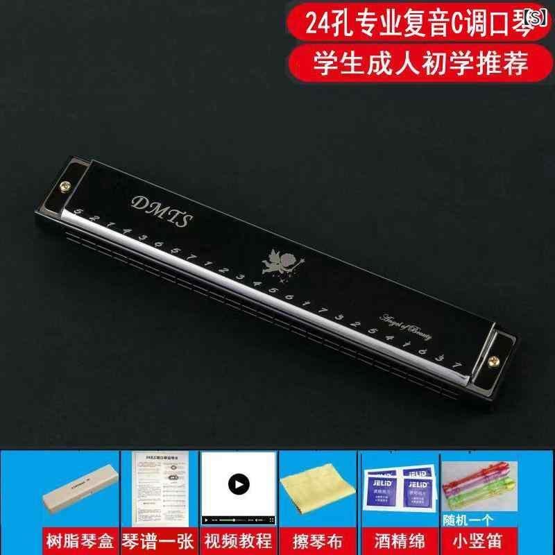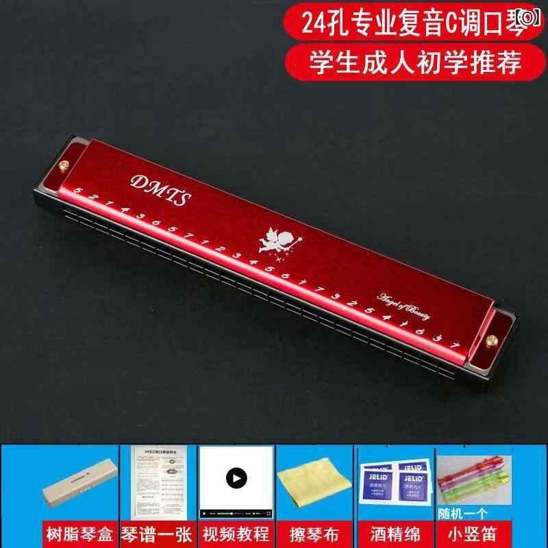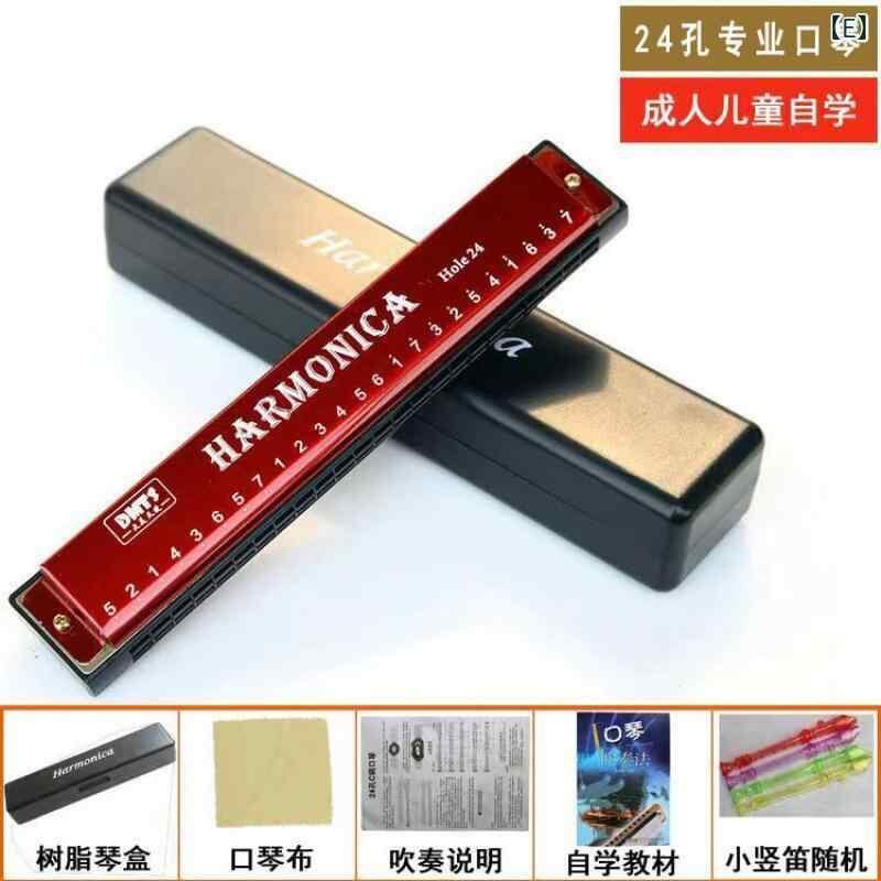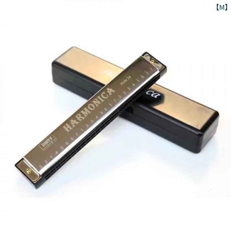ハーモニカ 大人用 子供用 学生用 初心者 入門 独学 練習用 演奏用 プロ向け 本格的 24穴 複音 C調 レッド ブルー ゴールド シルバー ブラック