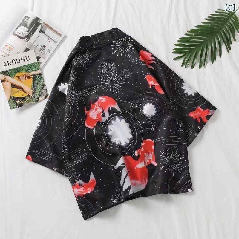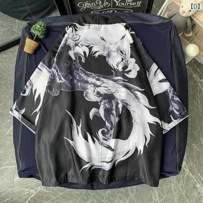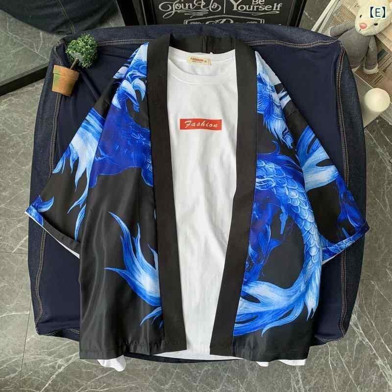 和装 羽織 メンズ 男性用 中華風 漢服 和風 ゆったり 浮世絵柄 カーディガン 薄手 日焼け対策 ガウン ローブ ストリートカジュアル ルーズシルエット 夏 ポリエステル