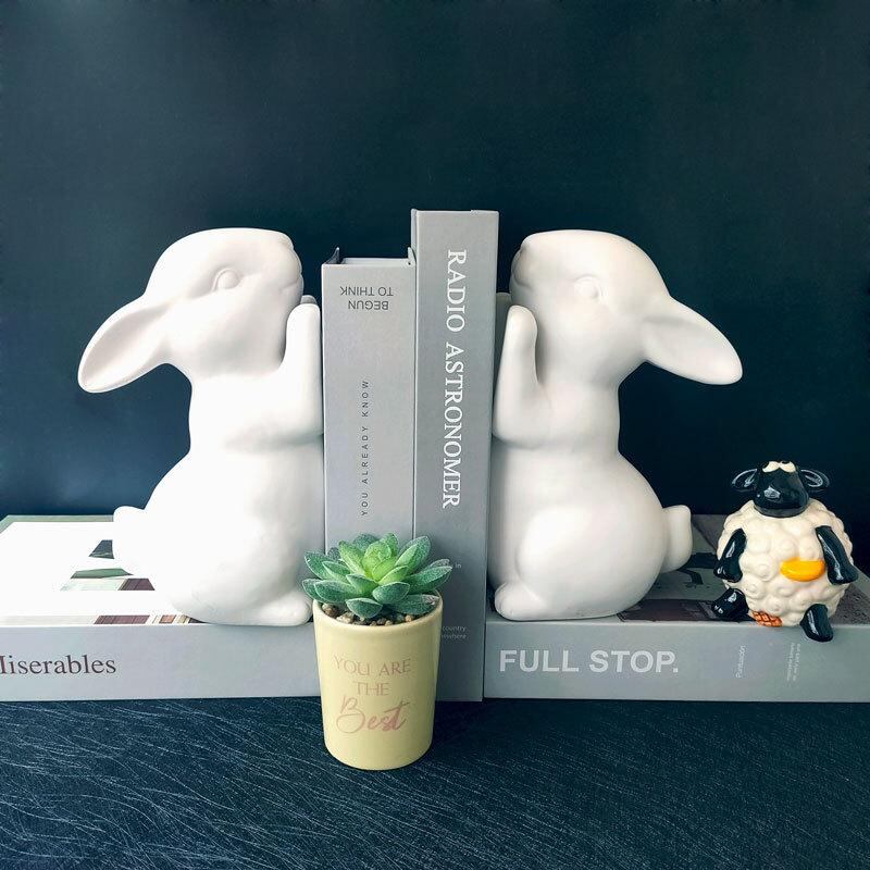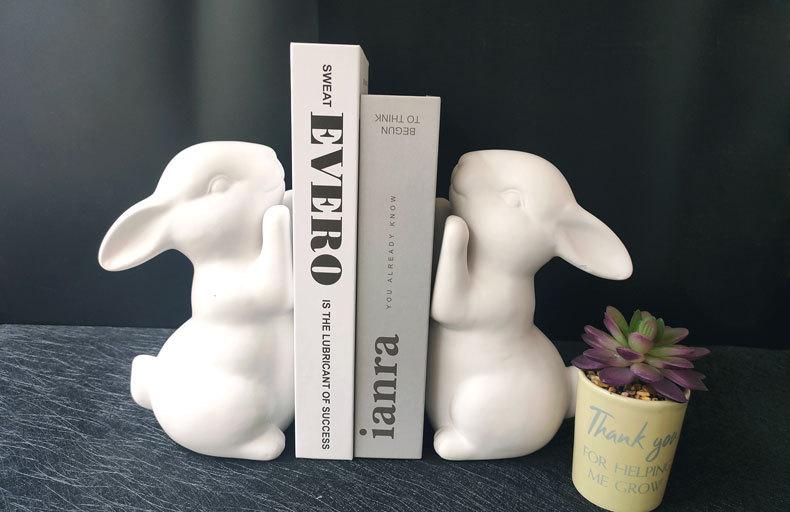 ブックスタンド うさぎ型 陶器製 2個セット かわいい 北欧風 シンプル おしゃれ 本立て 読書スタンド 卓上収納 オブジェ 動物モチーフ 癒し インテリア ホワイト