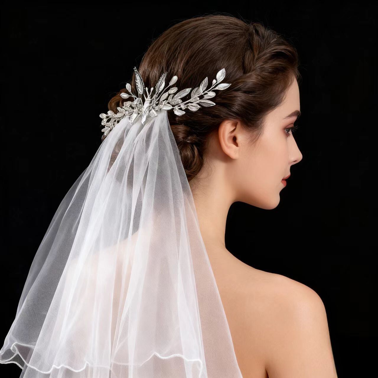 ウェディングベール レディース 花嫁 結婚式 ショート丈 二層 パール チュール レース ロマンティック フレンチテイスト 森ガール風 ナチュラル 華やか シルバー ヘッドドレス ヘアアクセサリー