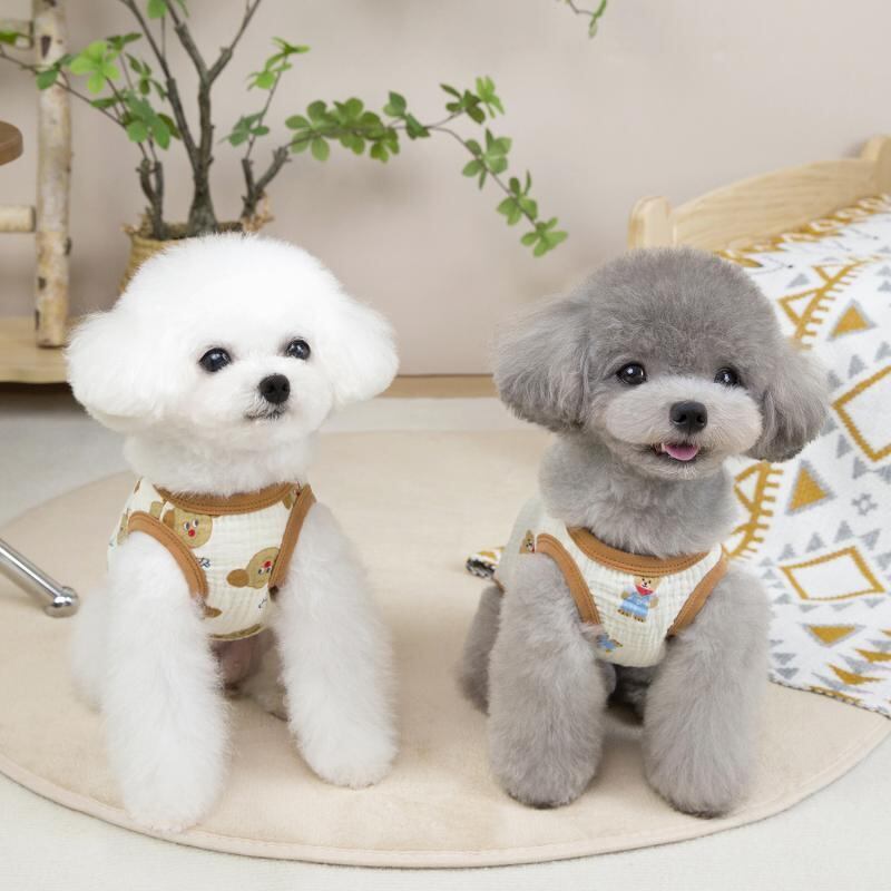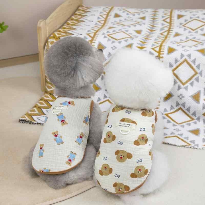 犬猫用ベスト 小型犬 猫用 コットン 綿素材 スリーブレス 快適 通気性 カジュアル ペットウェア クマ柄 イヌ柄