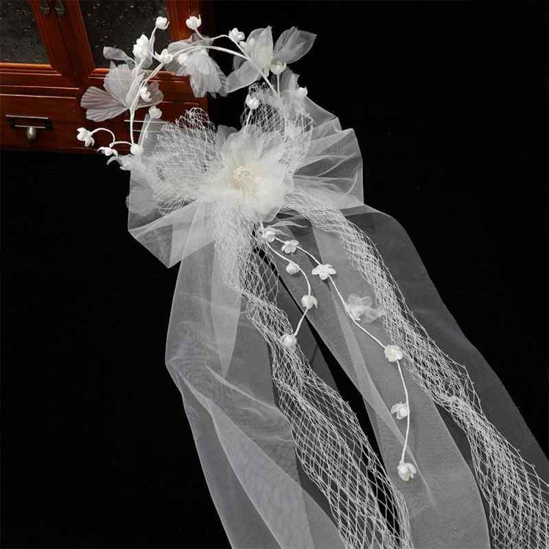 ヘッドドレス レディース ハンドメイド レース フラワー パール ショートベール リボン 二層式 森ガール風 ナチュラル ウェディング 結婚式 前撮り ロケーションフォト 撮影小物 髪飾り ホワイト