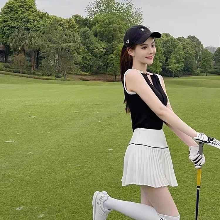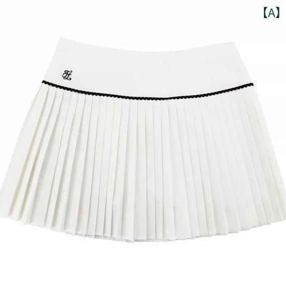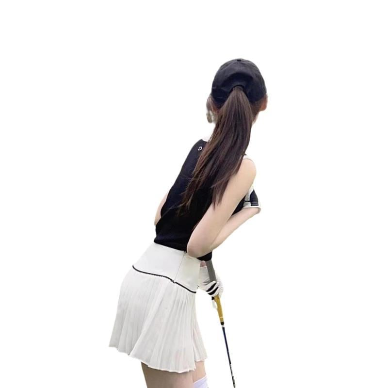 セットアップ レディース ゴルフウェア テニスウェア 半袖 プリーツスカート 韓国風 スポーツウェア 夏用 アクティブウェア 竹繊維 ポリプロピレン ブラック ホワイト 上下セット