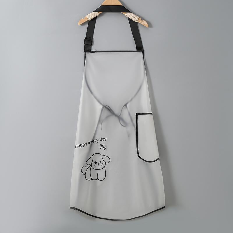 エプロン レディース 女性用 首掛け ホルターネック 半透明 防水 防油 汚れ防止 TPU かわいい うさぎ柄 長さ調節可能 キッチン 作業用