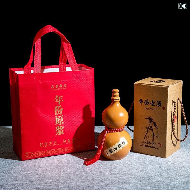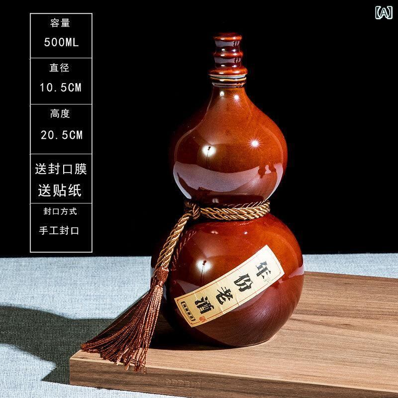 酒器 陶器 陶磁器 瓢箪型 酒瓶 徳利 酒壺 酒甕 密閉 保存容器 熟成用 長期貯蔵 家庭用 レトロ ヴィンテージ風 ディスプレイ コレクション用 500ml 空き瓶 空ボトル 黒系 赤系 黄色 グリーン系