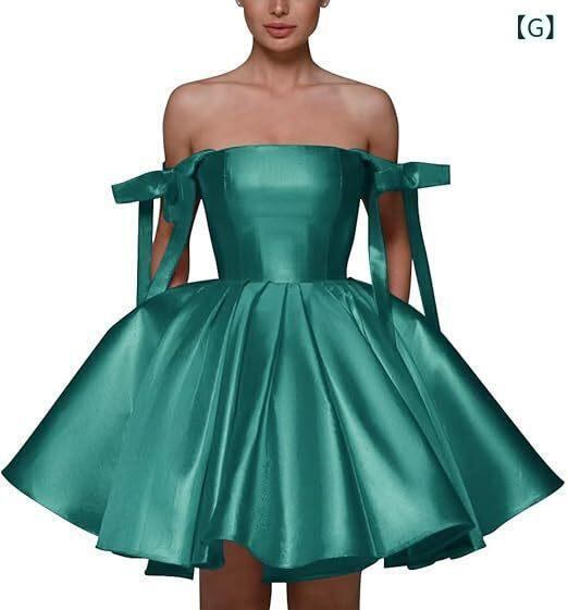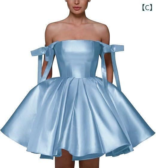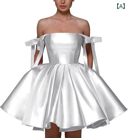 ドレス レディース オフショルダー ウェディングドレス 低身長 花嫁 清楚 上品 パーティードレス ショート丈 ミニ丈 Aライン 結婚式 披露宴 二次会 お呼ばれ 演奏会 発表会 ホワイト エレガント サマー ポリエステル素材 ノースリーブ