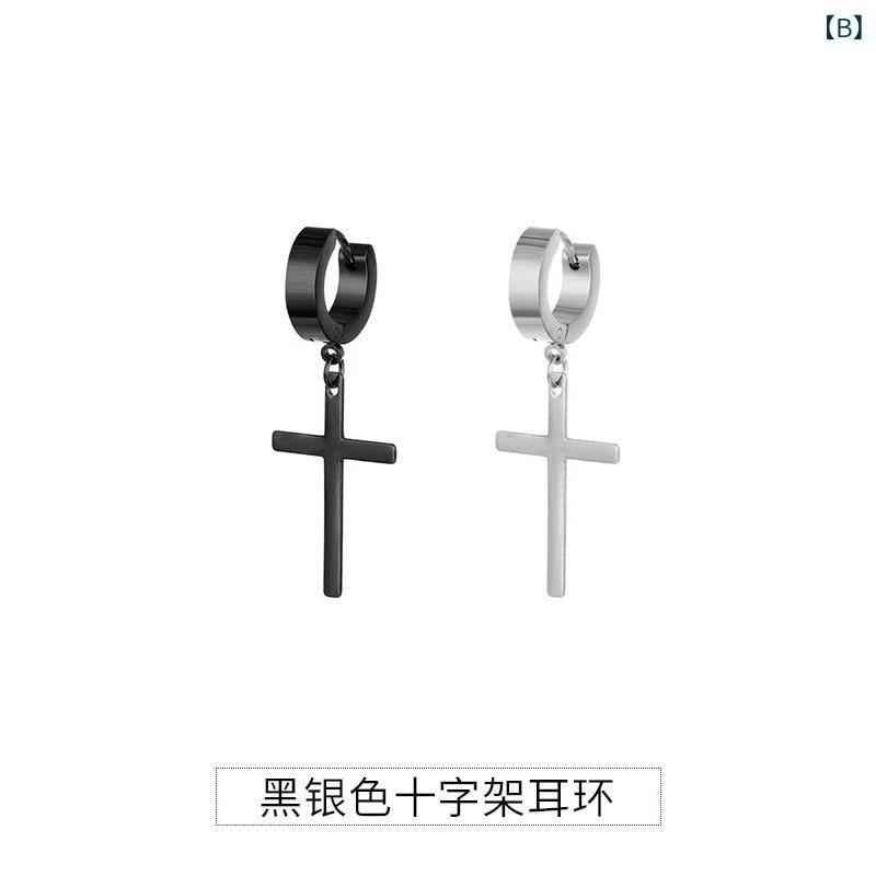 耳飾り メンズ 男性用 十字架 ピアス イヤリング イヤーカフ ノンホール チタン鋼製 欧米風 ヒップホップ ストリート ワイルド クール 個性派 ミニマルデザイン 幾何学 ブラック シルバー